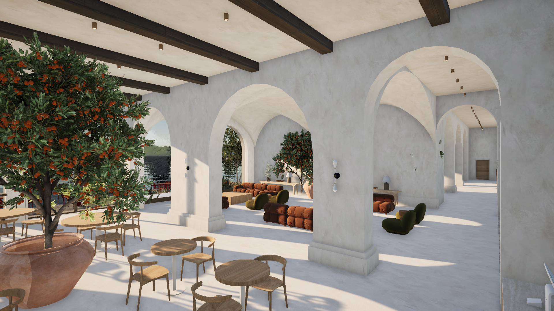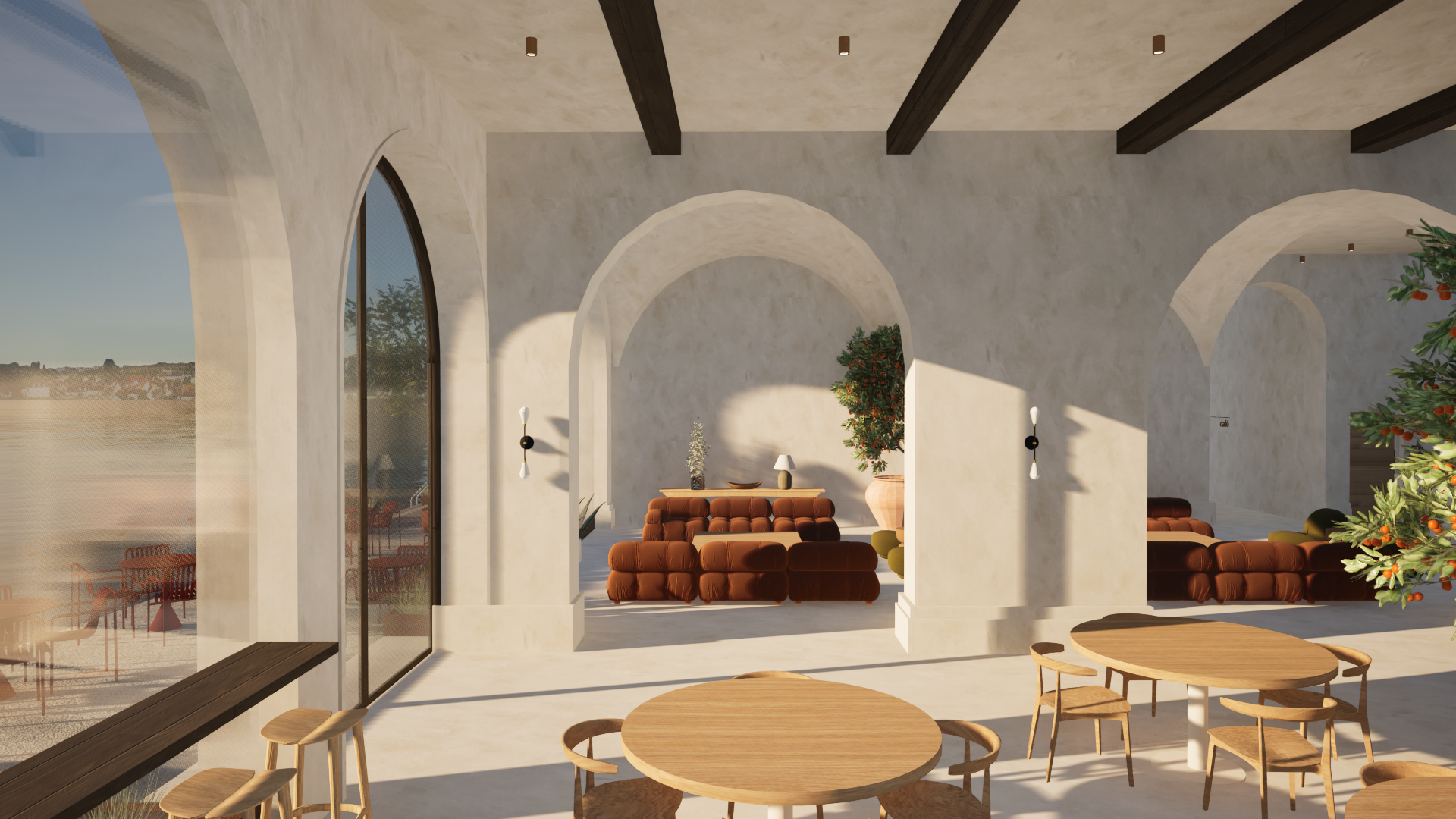 The design emphasizes simplicity, harmony and timelessness. Large windows let natural light flood the space, connecting the indoors with the breathtaking outdoor scenery. The high ceilings and open spaces create an airy, welcoming atmosphere. The architecture is a blend of clean, modern lines and organic forms, using soft curves, arches and vaulted ceilings to bring warmth and comfort
