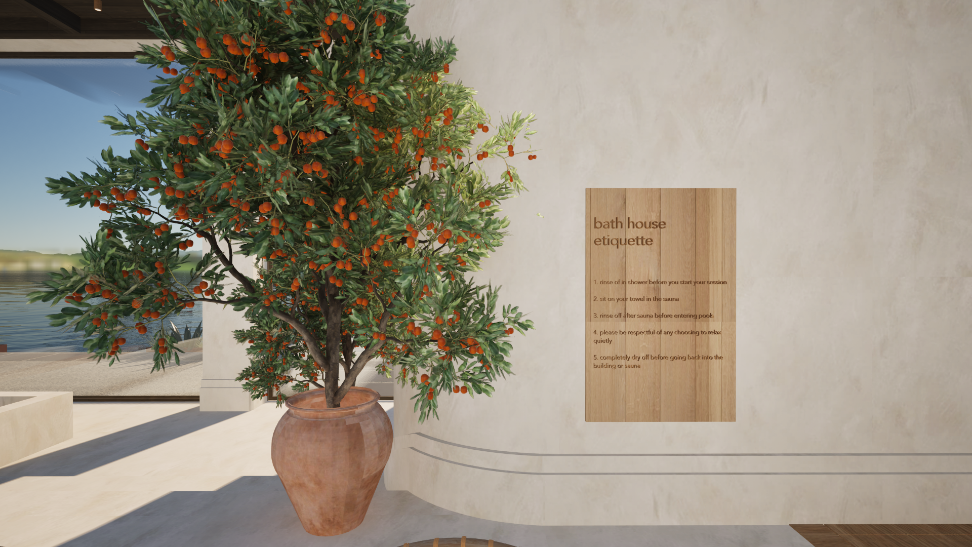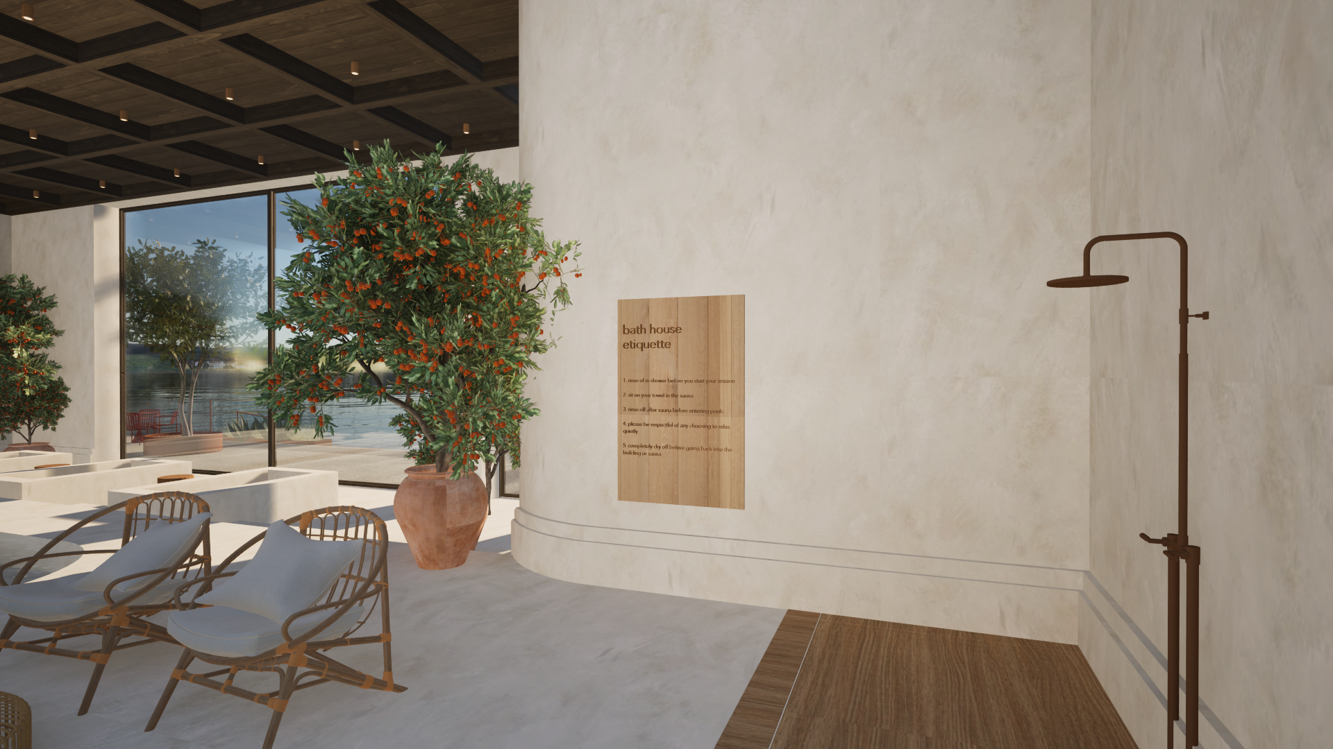 The bathhouse is designed with sustainability and timelessness in mind, using high-quality, eco-friendly materials that age beautifully. Natural stone, wood, and glass are chosen for their durability and connection to nature, creating a serene, harmonious environment. The materials are sourced locally whenever possible, supporting the local economy and reducing the project’s environmental footprint.