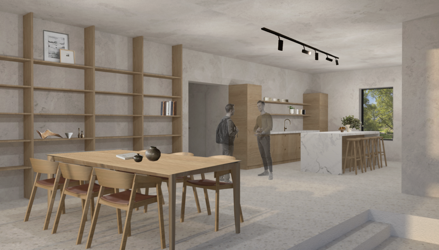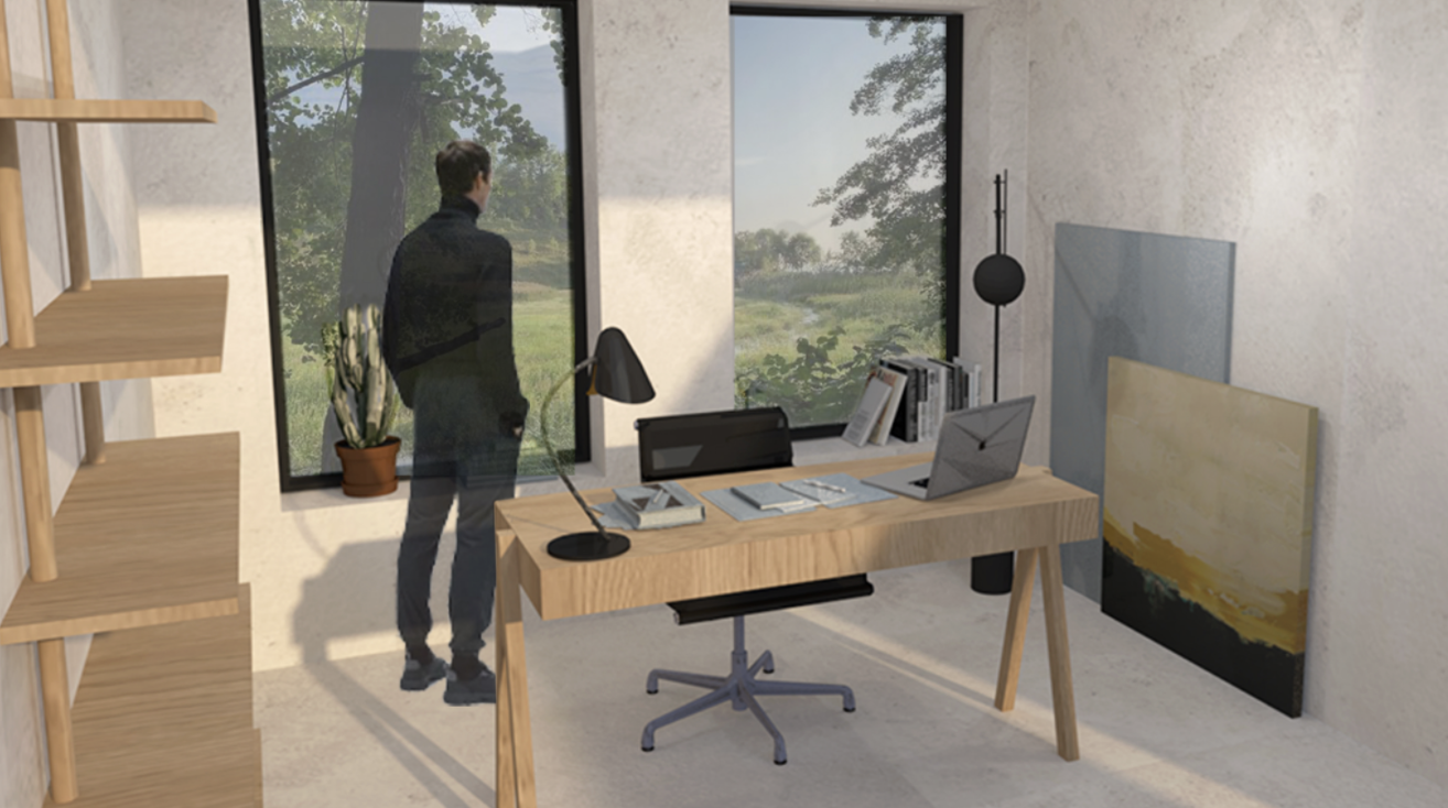 Warm, natural tones like soft wood and earthy hues are combined with industrial elements such as exposed brick and metal accents to create a space that feels both welcoming and inspiring.